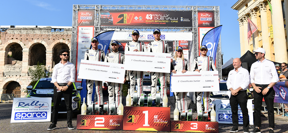 Il loro risultato li ha portati al successo finale, alle prime posizioni nei Campionati Italiani 2WD e Under25, al trionfo nella categoria Junior e al titolo di “Best Performer”. A soli cinque secondi di distanza, Pisani e Biagi, già vincitori alla Targa Florio, si sono classificati secondi assoluti, con il primo posto nella categoria Master e un ultimo, decisivo attacco nel Miki Stage.