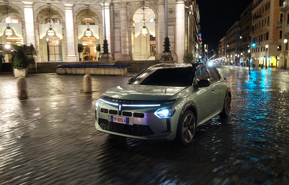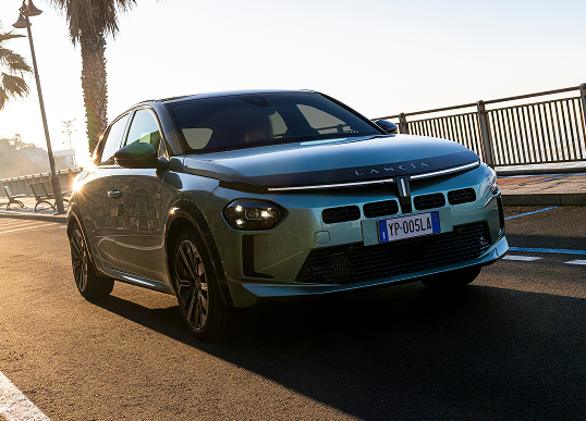 Il frontale reinterpreta lo storico calice Lancia: tre fasci di LED che rendono l'auto immediatamente riconoscibile sia di giorno che di notte. Nella parte posteriore, i fari a LED sono un chiaro omaggio alla Lancia Stratos, leggenda dei rally.